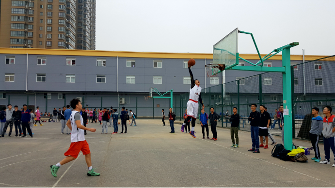金秋十月,碧空如洗,凉爽舒适。2016年10月11日,伴着秋风,迎来了成人短剧 迎新杯篮球赛。正值中午,电信院与经管院展开了一场激烈的友谊赛。参与本次活动的有体育部部长王宏洋、副部长杨攀,生活部部长李晨阳,秘书部部长刘海涛。