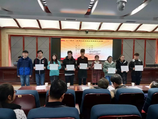 荣获“十佳大学生”称号的14040517班陈凯欣同学代表受表彰学生发言,他结合自己的情况,向同学们介绍了自己的学习方法,与同学们分享了自己的学习经验;16040103班徐一凡同学为同学们宣读了学风倡议书,建议同学们要努力学习,端正学习态度;16040517班胡彬同学父亲,代表家长上台发言,他对学校和学院提出了感谢,并站在家长的视角向在校学生提出了殷切希望。
