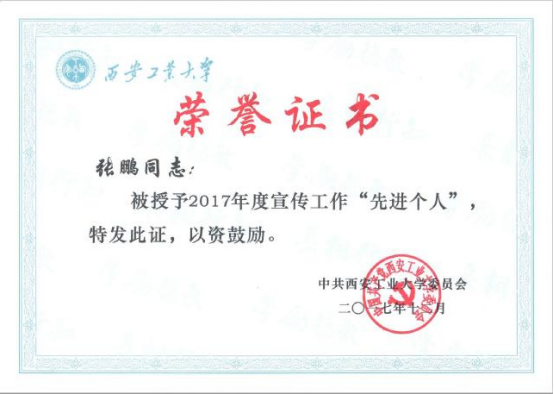 成人短剧 在此次年会中获得集体奖一项,即2017年度宣传工作“先进集体”;个人奖二项,分别为:张鹏荣获2017年度宣传工作“先进个人”,赵志升荣获2017年思想政治教育研究会征文活动三等奖。