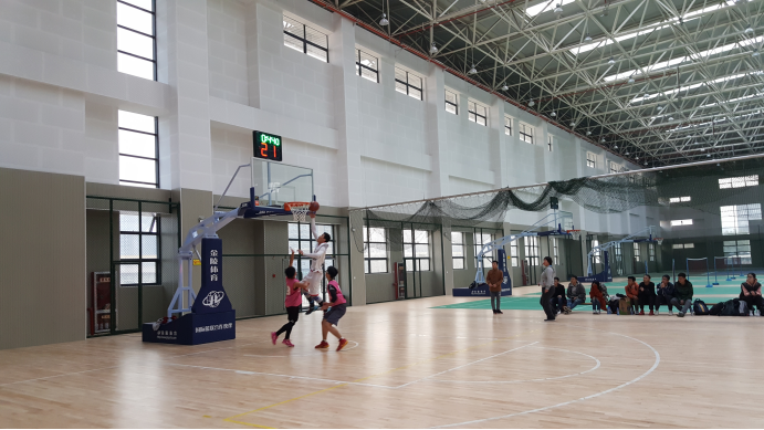 中午十一时四十分,参赛的双方队员陆续到场,进行热身训练。十二点整,随着裁判的一声哨响,比赛正式开始。可以看出,能够晋级决赛的每一位队员都有自身的优势,双方开始都充分的发挥自身优势意图碾压对手,拉开比分。奈何势均力敌,比分你追我赶,不相上下。紧张激烈的攻防拉锯战牵动着在场每一位观众的心。“电信加油!电信加油!”在学长和学姐们的助威声中电信院的队员们拼着一股劲,最终以51:47的比分险胜体育学院。比赛于下午一点二十分结束。