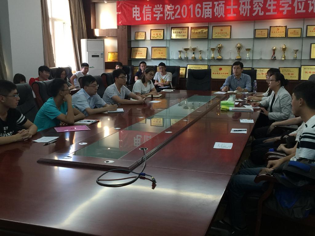 2016年5月24日下午17:00,电信学院2013级电子信息科学与技术专业学生座谈会在工科5楼404会议室隆重举行。出席本次座谈会的有电信学院副院长王鹏、学院党委副书记姚敏茹、学院教学督导组组长尚宇、学院老师华翔、马雅玲、学院2013级辅导员以及2013级学生代表四十余人。此次座谈会主要分为两个环节。第一、学生代表就学校的教学设施以及教师的教学情况提出意见和建议;第二、王鹏老师,姚敏茹老师,尚宇老师对学生提出的疑问做出详细解答并总结。