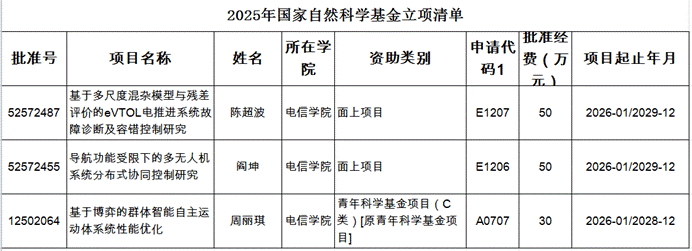 陈超波、阎坤老师分别获批面上项目1项,资助经费均为50万元;周丽琪老师获批青年基金1项,资助经费30万元。