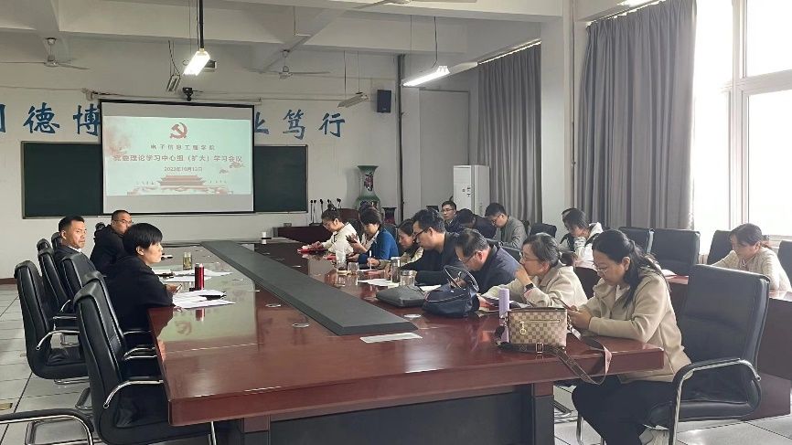 1013日,成人短剧 在教5-424召开党委理论学习中心组(扩大)学习会议。学院领导班子成员、党委委员、纪委委员、党支部书记及全体辅导员参加学习,会议由院党委书记易超主持。