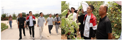 参观学习第二站是享有“中国苹果第一村”美誉的洛川县阿寺村。在阿寺村村委书记李保艮的带领下,师生们先后参观了苹果主题示范园、洛川苹果之父李新安纪念馆。大家深切感受到洛川苹果发展的不易和艰辛,老人在革命战争年代跋山涉水将“果苗”带回洛川,并排除万难、刻苦钻研,最终通过“小小”苹果带动洛川苹果产业的发展壮大。