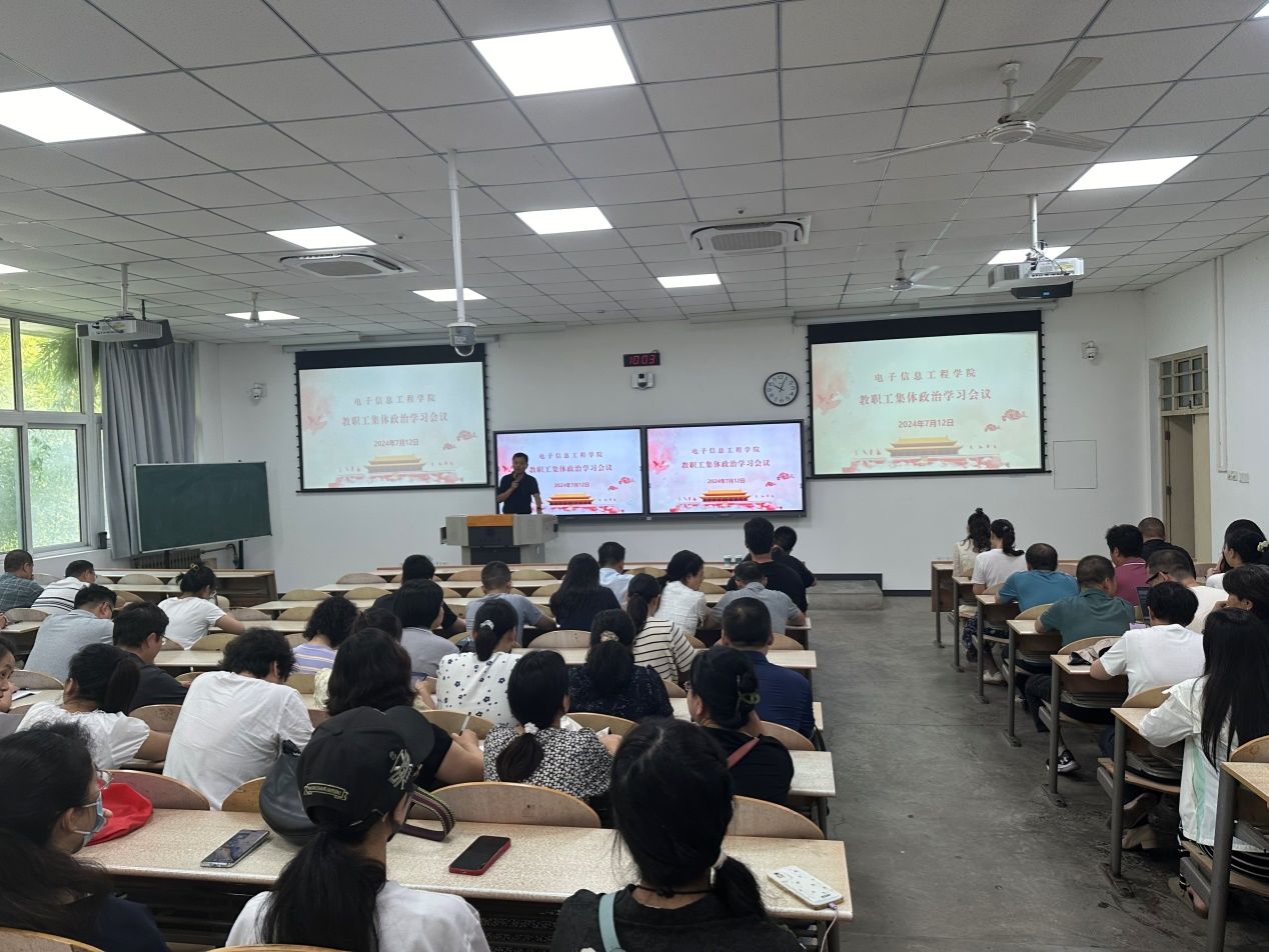 在教室2-104召开教职工集体政治学习会,会议由院党委书记易超主持,全院教职工参加。