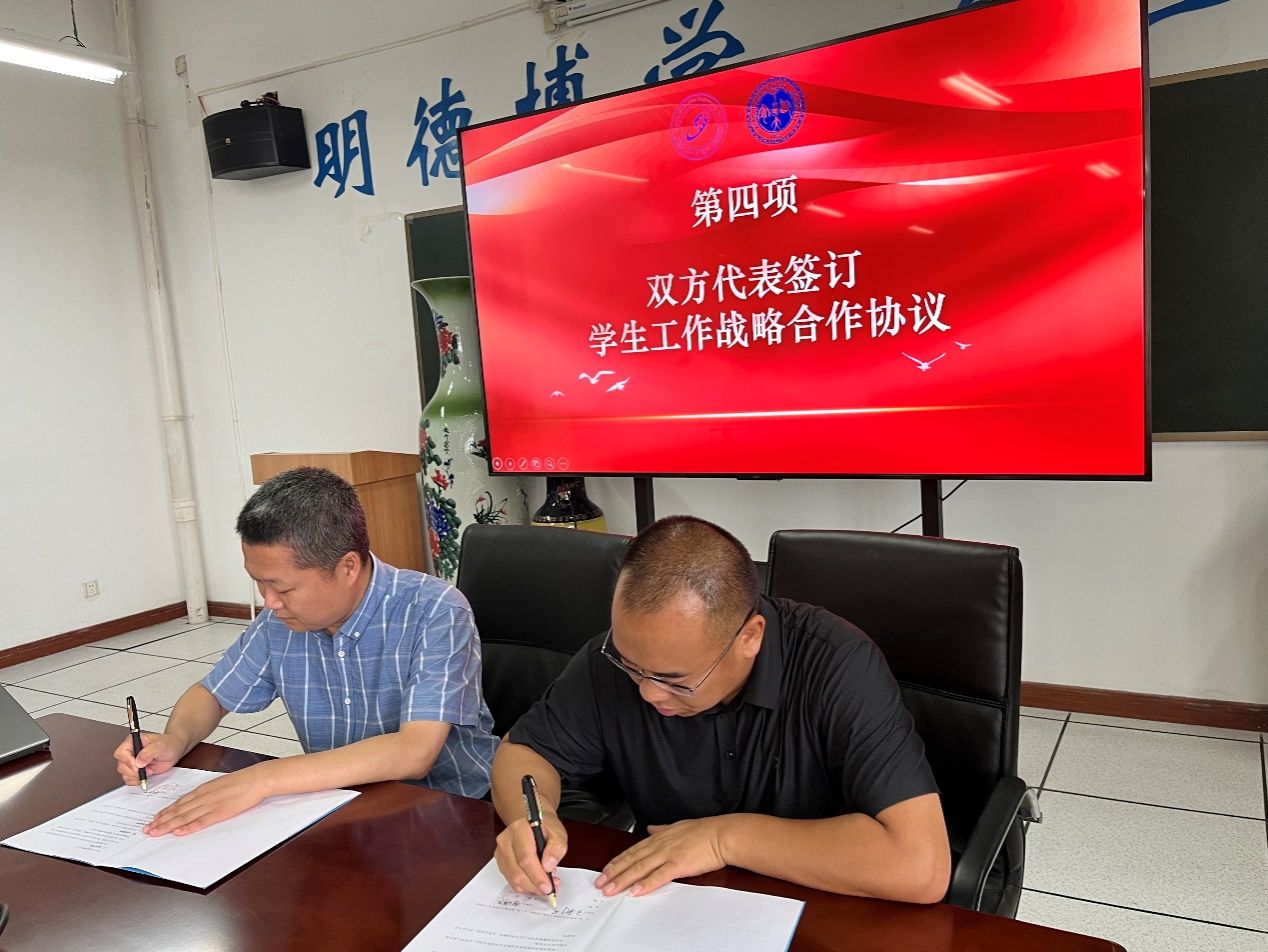 何海生与王利军分别代表西安理工大学电气工程学院和成人短剧 签订了学生工作战略合作协议。