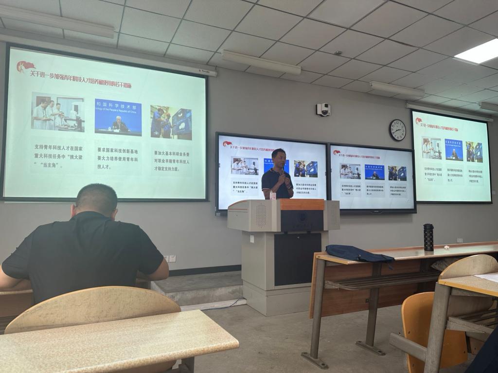 在第一阶段,易超书记带领全体教职工学习了习近平总书记致全国优秀教师代表的信、习近平总书记对网络安全工作“四个坚持”的重要指示精神、中共中央办公厅和国务院办公厅印发的《关于进一步加强青年科技人才培养和使用的若干措施》,组织观看了黄大年事迹宣传短片和《“小权力”背后的“大任性”——高强》警示教育片。