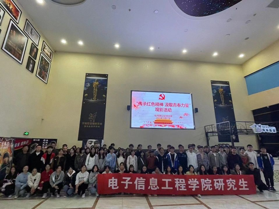 组织全体研究生党员于10月17日举行以“传承红色精神,汲取青春力量”为主题的观影活动,由刘叶楠老师带队,全体党员及院研会成员参加。