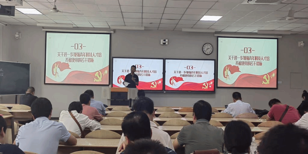 深入贯彻党的二十大精神,落实中央人才工作会议部署,易书记带领教职工学习了中共中央办公厅、国务院办公厅印发的《关于进一步加强青年科技人才培养和使用的若干措施》,引导鼓励青年教师潜心研究,树立长远眼光,增强科研信心,激励奋斗精神,促进健康成长。