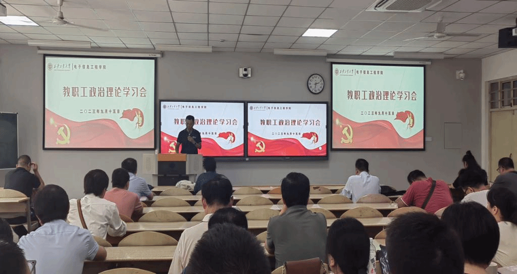 在教2-203召开教职工思想政治理论学习会,会议由院党委书记易超主持,全体教职工参加。