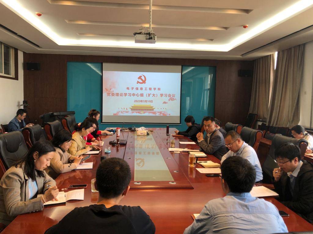 3月10日下午,电信学院召开党委理论学习中心组扩大专题学习会,学院党委书记易超主持。学院班子成员、党委委员、系主任、支部书记、辅导员参加学习。