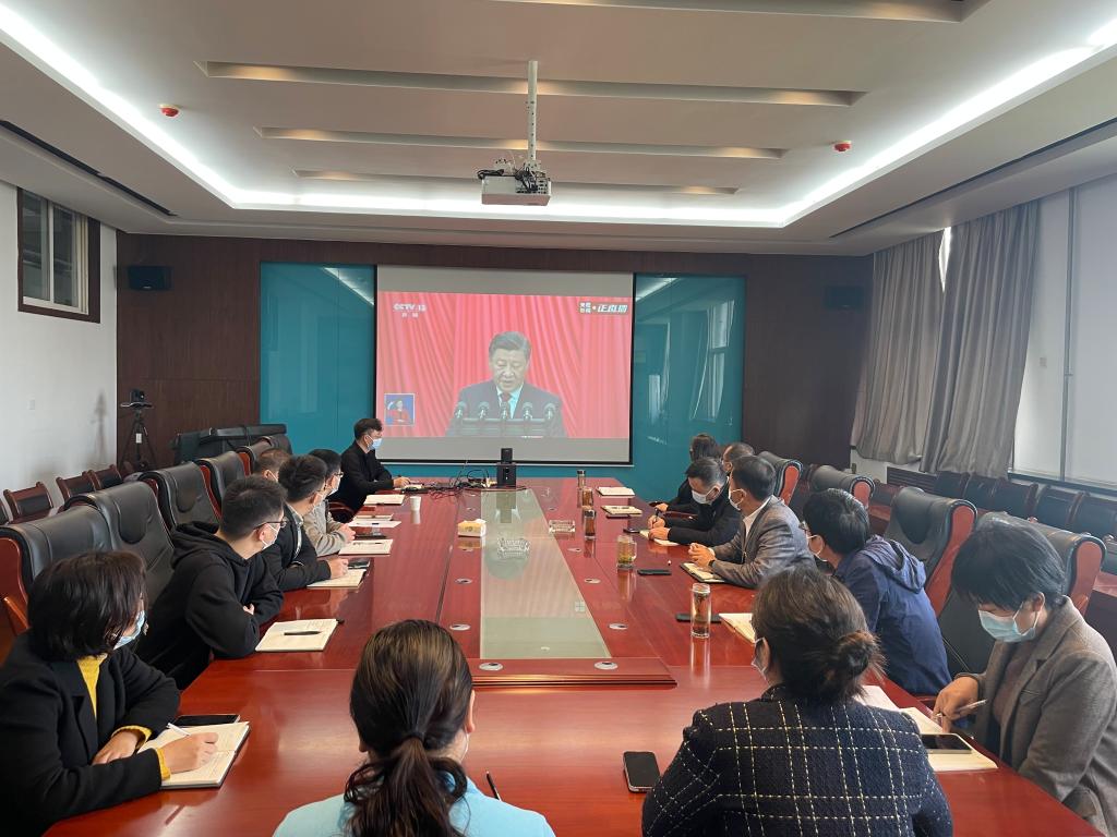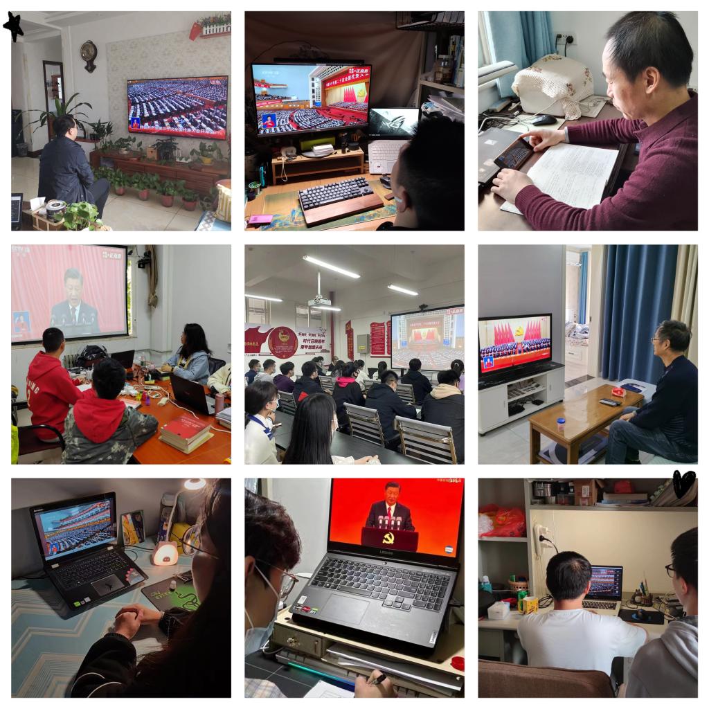 全体党员师生通过网络、电视、新媒体等多种形式收听收看党的二十大直播实况,聆听大会报告。
