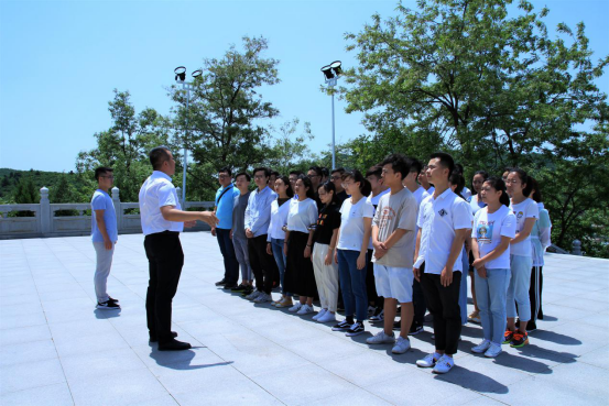 接下来学生党员们怀着崇敬的心情,踏着213阶台阶来到了纪念碑脚下,看着纪念碑上镌刻的“陕甘边革命根据地的英雄们永垂不朽”十六个大字以及基座四面的四组浮雕,党员同志们似乎来到了那个战火纷飞的年代,感受到了硝烟弥漫下的老一辈革命家们为了民族独立、为了人民解放而英勇杀敌、浴血奋战的画面和光辉历程。在纪念碑下,学生第七党支部书记张鹏老师给全体党员讲解了一场生动的党课,张鹏老师强调:“身为共产党人,我们要有担当,有责任感和使命感,要传承革命英雄主义,在关键的时刻敢为人先。”