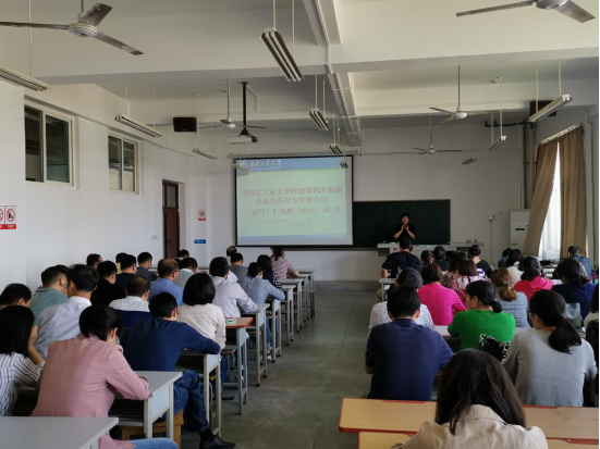 组织全体教师召开专题会议,深入学习讨论学校“师德师风负面清单及失范行为处理办法”,学院全体教职工参加会议。
