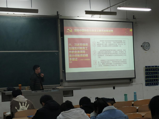 11月21日晚,电信学院2017级开展全国教育大会精神学习会,同时在教1-105、教1-205教室进行。本次学习会由辅导员夏开成和王玉梅领学,电信学院2017级全体学生参加学习。