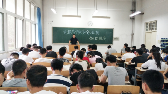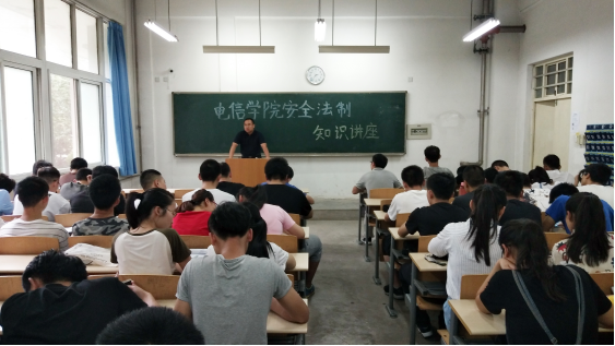 6月26日下午,电信学院在教3-104教室举行安全法制知识讲座,电信学院党委副书记王利军老师和2017级辅导员夏开成老师出席此次讲座,2017级100余名学生参加讲座。