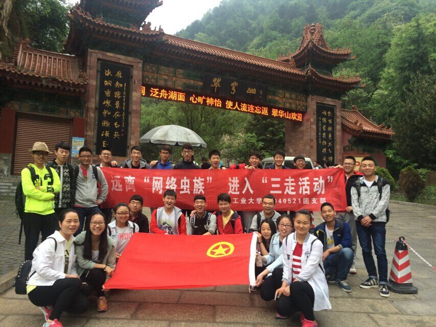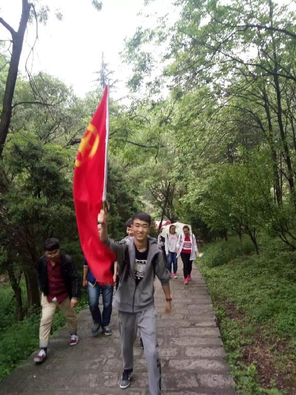 翠华山旅游景区位于西安城南20公里处秦岭北麓,景区面积32平方公里。早上八点钟,全体支部成员在校东门口集合,带着横幅和团旗,在团支书做了安全事项指示后,大家情绪振奋地出发了。经过2个小时,我们到了目的地。虽然天空飘着小雨,但是丝毫不影响大家集体活动的兴致。 翠华山有碧山湖景区、天池景区和山崩石海景区3部分最为出名,但是在路上还有很多零散的景色也会让我们感觉到大自然鬼斧神工般的神奇。我们从山脚一块儿伴随着汗水、雨水、笑声,互相鼓励、互相帮助的到达了山顶,之前的劳累已被抛掷脑后,感觉到的只是胜利的喜悦和团结的力量。在中途休息的地方,为了活跃气氛,我们自行开展了各种游戏,并且团支书给大家普及了“社会主义核心价值观、四进四信、2016两会主要内容”的知识。