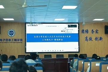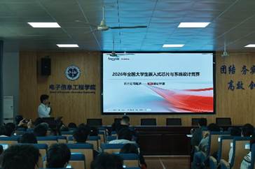 “全国大学生嵌入式芯片与系统设计竞赛”是全国普通高校大学生竞赛国家级A类赛事,竞赛采用赛题指定的开发平台为核心,根据选题指南自由选择赛题,开放式自主设计并完成参赛作品。为了提高师生对全国大学生嵌入式芯片与系统设计大赛(简称嵌赛)的认知和参与,提升学生的创新实践能力,并助力学生在该项赛事获得优异的成绩,我校电信学院联合相关企业策划组织了此次宣讲会。